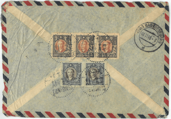 民国晚期国际航空实寄封2-1 (币制: 法币)
