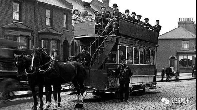有轨电车起源于城市公共马车,为了多载客,人们把马车放在铁轨上。最早的有轨电车,确切的说,应该叫“有轨马车”。1807年英国威尔士出现了世界上第一条客运轨道公交车,是用马牵引的,这可以说是有轨电车的雏形。