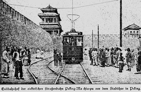 中国最早的有轨电车出现于清朝时期的北京,时间是1899年,由德国西门子公司修建,第一条有轨电车连接郊区的马家堡火车站与永定门,称“马永线”, 可惜这条有轨电车存在的时间非常短暂,因为义和团运动被毁,这条有轨电车线路在被破坏后也没有修复。